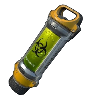 Virus Samples that lay on the ground uncollected cannot be damaged by anything. The moment you begin carrying one means taking damage will eventually put you at risk of infection. Given that the container houses a sample of the zombie virus that turns humans into zekes, letting the container crack and leaking some of the contents on you is one of the last things you would want happening. Physical damage such as gunshots, explosions, and swipe attacks from zombies can damage the container. Attacks such as fire or gas from the Gasbag cannot damage the container. An attack that damages the sample will cause it to momentarily flash and make a glass cracking sound.